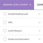 Choose from Guided Reading Level, DRA, Lexile Measure, and Grade Level Equivalent, and click on the level you're looking for.