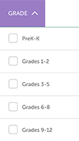 Select from PreK-K, 1-2, 3-5, 6-8, 9-12.